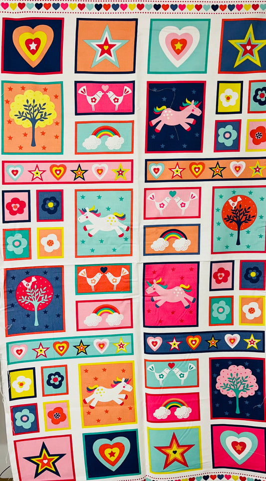 Unicorns & Rainbows Children's Cot Quilt Fabric Panel
