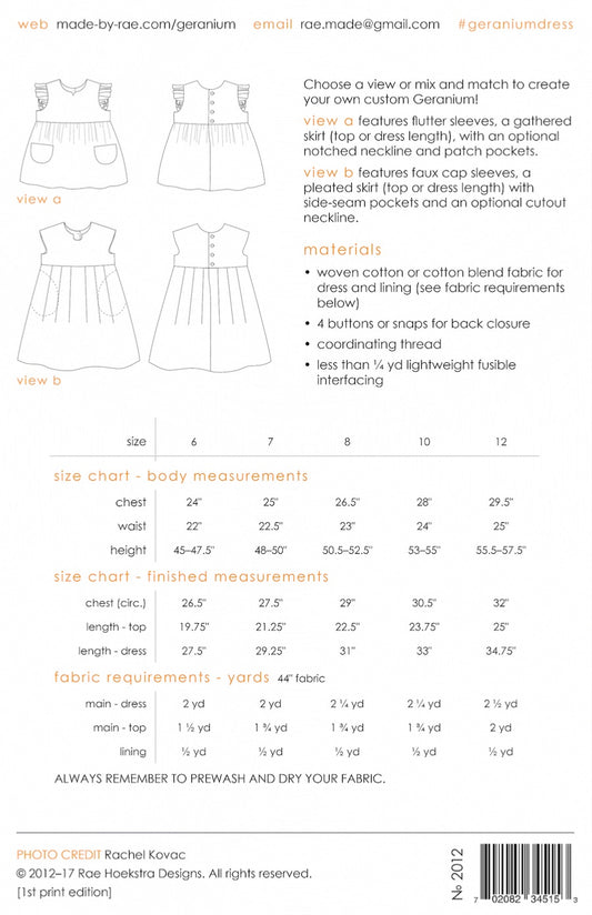 Geranium Girls Dress Large (6 from 12yrs) Pattern from Made By Rae