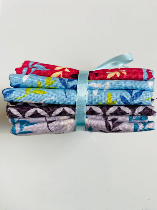 Fabric Fat Quarter Bundle - Purple/ Blue/ Green/ Grey / Yellow - 100% Cotton