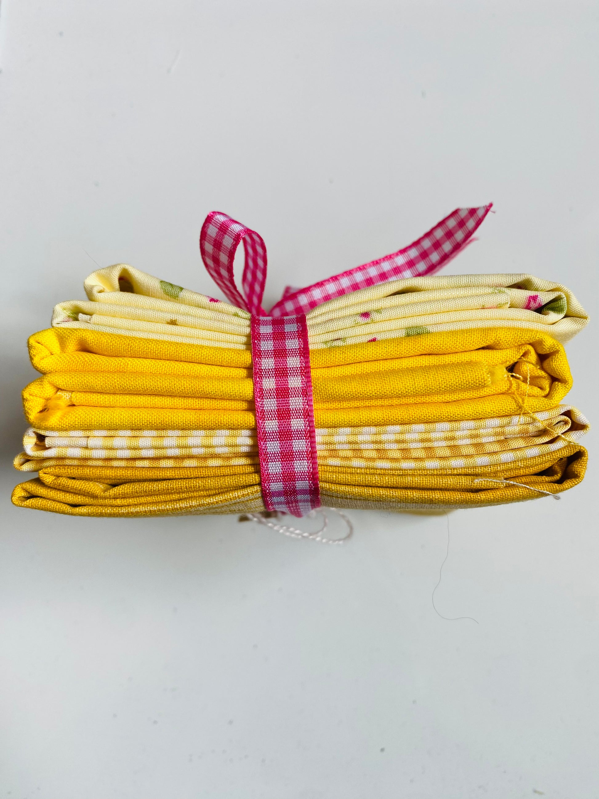 Please note that the supply of spring yellow fabric - the colours, patterns and style of fat quarter packs will vary depending on availability in the shop on the day of the order but will be packaged as shown.