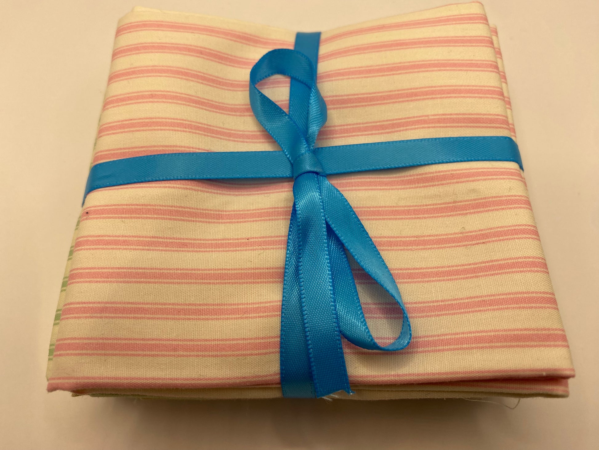 Please note that the supply of striped fabric - the colours, patterns and style of fat quarter packs will vary depending on availability in the shop on the day of the order but will be packaged as shown.
