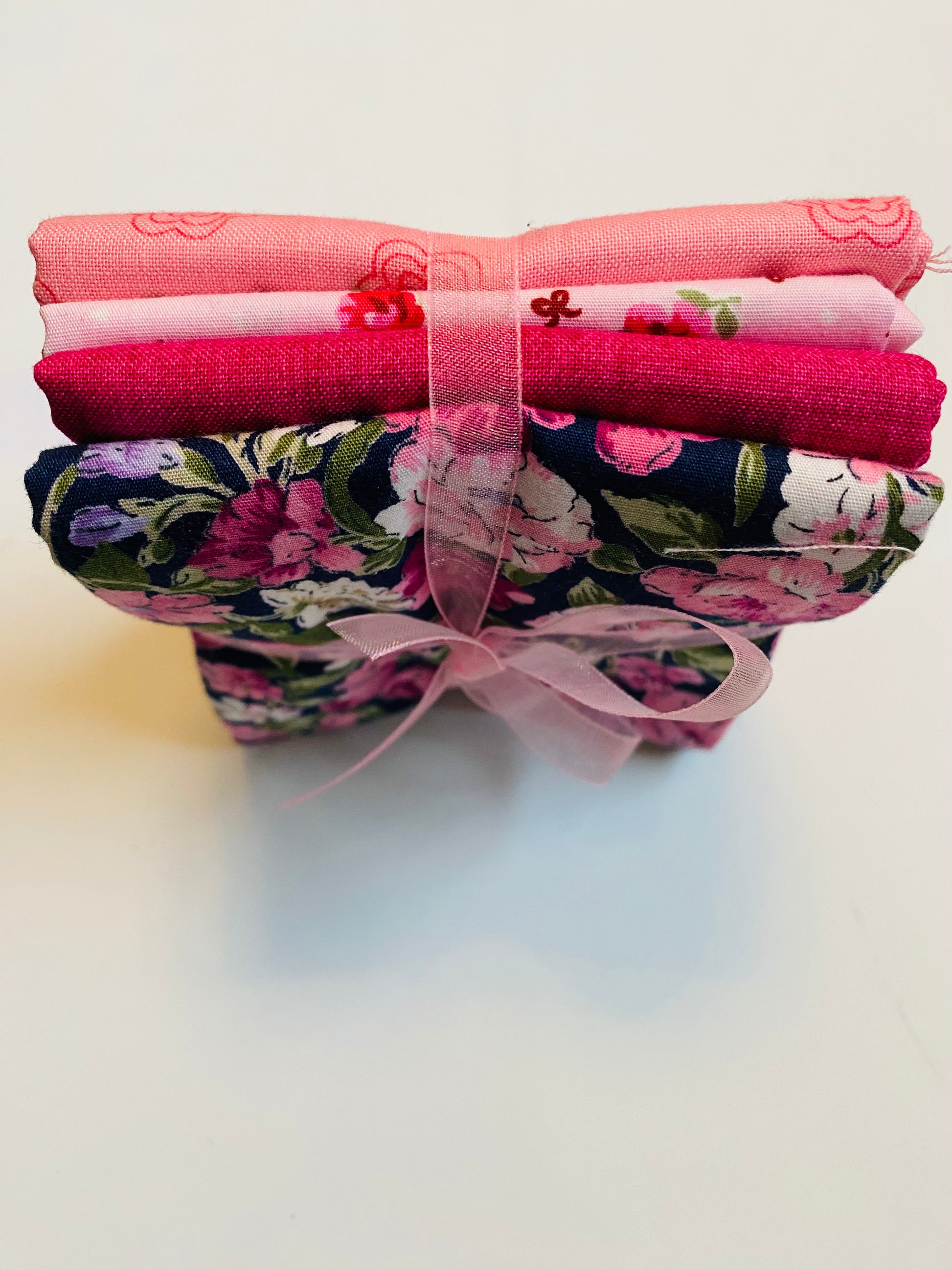Please note that the supply of pink and complimentary to pink fabric - the colours, patterns and style of fat quarter packs will vary depending on availability in the shop on the day of the order but will be packaged as shown.